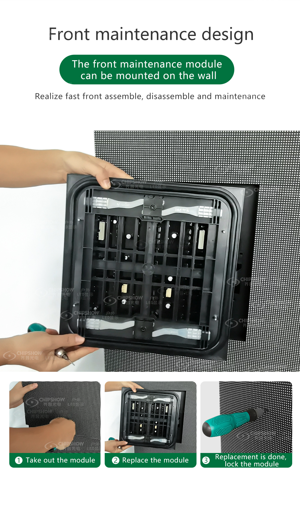 7 hohe Schutznote: Die Schutzqualität der C-Fit-Easy-Serie erreicht IP65; Und diese Art von Werbetafelbildschirm ist sehr geeignet für große Format-Outdoor-Anzeigen wie LED im Freien Wände, und LED -Bildschirme mit einem Bodenstapelsystem;