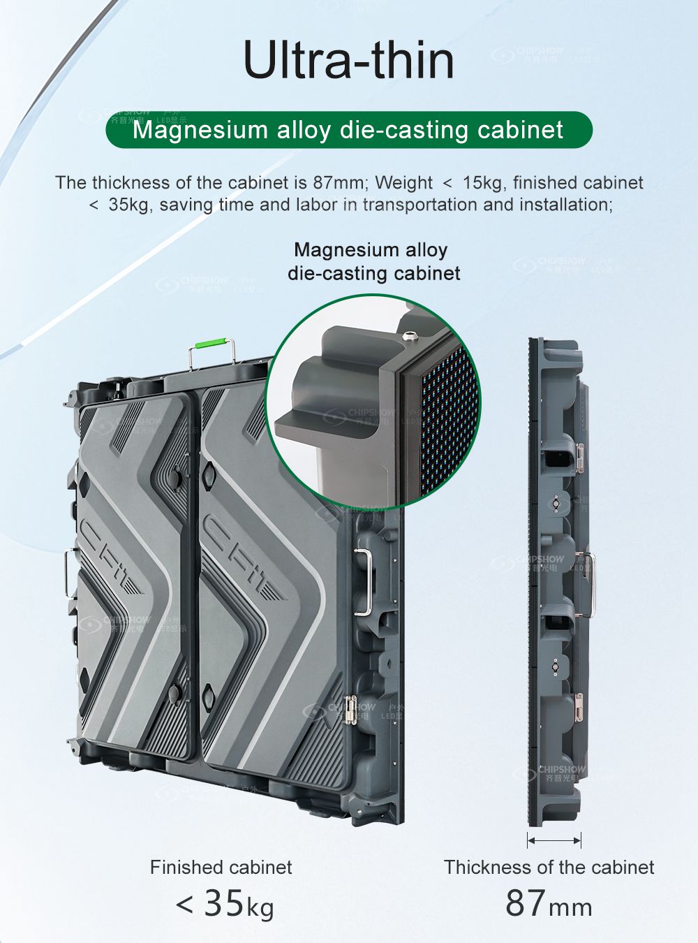 3 Ultradünn: Das Gehäuse besteht aus einer Magnesiumdruckgusslegierung (Gewicht des leeren Gehäuses: ï¼15 kg, Gewicht des fertigen Gehäuses: ï¼35 kg; Dicke des Gehäuses: 87 mm); Dies erleichtert den Transport und die Installation der Schränke.