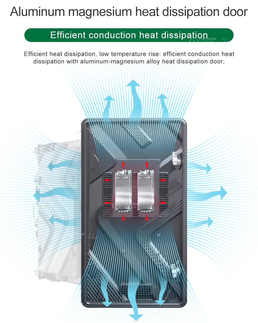 6 Hocheffiziente Wärmeableitung: Das selbst entwickelte Wärmeableitungssystem sorgt dafür, dass die Wärme in jeder Ecke des Schranks durch doppelten Strom und Unterdruck schnell abgeführt werden kann; Dadurch wird sichergestellt, dass der LED-Bildschirm immer normal funktionieren kann, ohne dass es zu Problemen mit der Wärmeableitung kommtï¼
