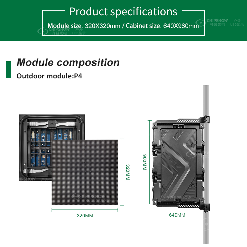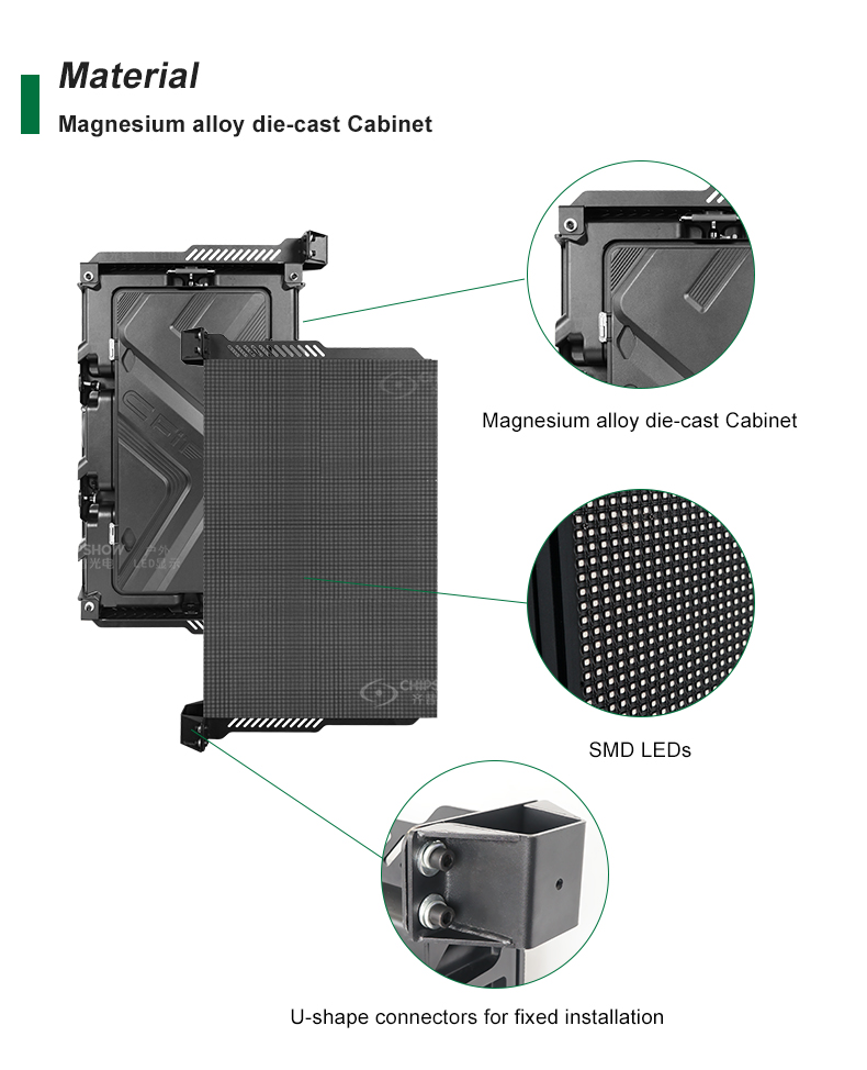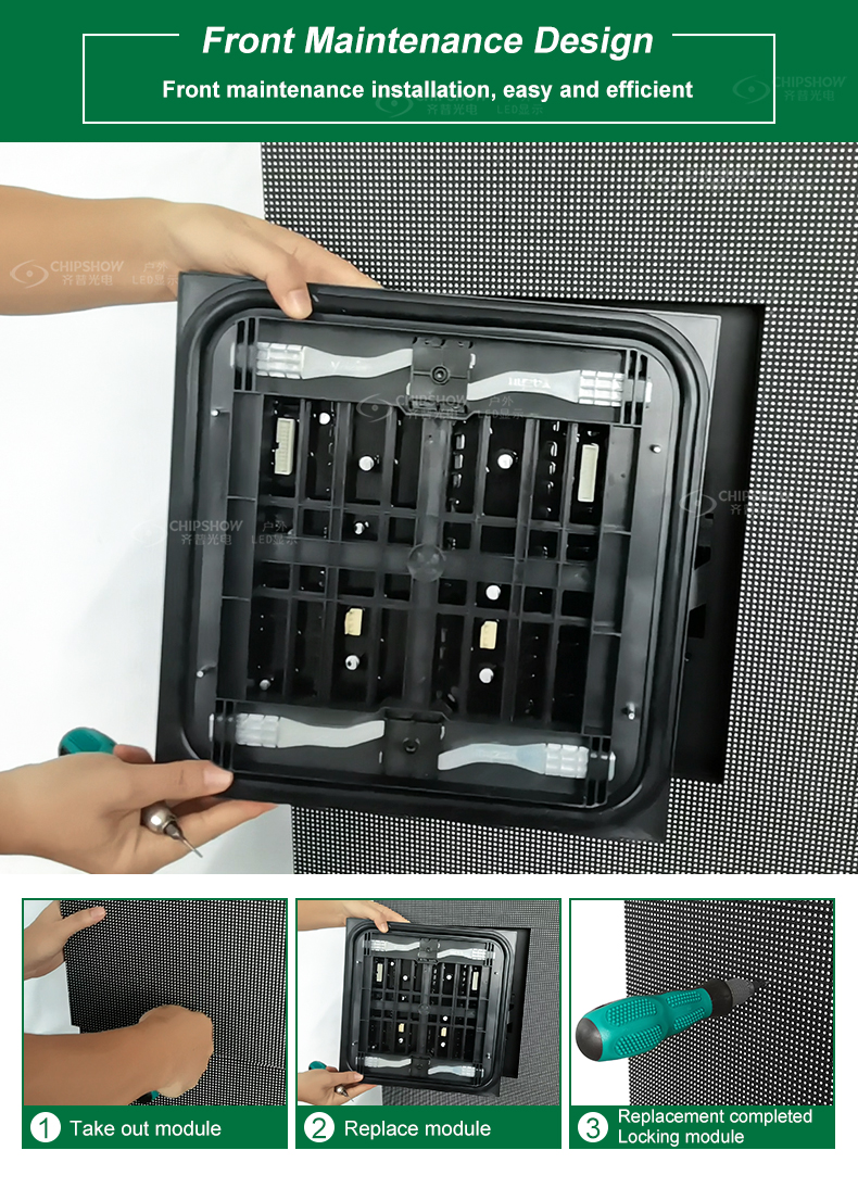 1 Es wird die Plug-Pull-Installationsmethode übernommen: Jeder Schrank wird mit Führungsschienen geliefert und kann schnell eingesteckt und herausgezogen werden. Dies macht den Demontage- und Wartungsprozess einfach; 2 Das Kabinett besteht aus hochpräzisen Aluminiumprofilen; Dies sorgt für die gute Flachheit des Bildschirms; 3 Es ist ratsam, die an der Wand montierte Installationsmethode anzuwenden. Jedes Modul kann sowohl von vorne als auch von hinten aufrechterhalten werden. Wenn Sie alle Module in einer geraden Linie ausrichten, sieht der Bildschirm ordentlich aus; 4 hohe Zuverlässigkeit: Die vollständig geschlossenen Module plus IP65-Plug-in-Komponenten sorgen dafür, dass das normale Ausführen des Bildschirms an Outdoor-Orten; 5 Das ultra-dünne, ultraleuchte Legierungsschrank speichert die Kosten für den Transport und die Installation erheblich; 6 Die C-Special Stadium-Serie wird besonders als Anzeigelösung für Stadionwände verwendet und steht um Stadien.