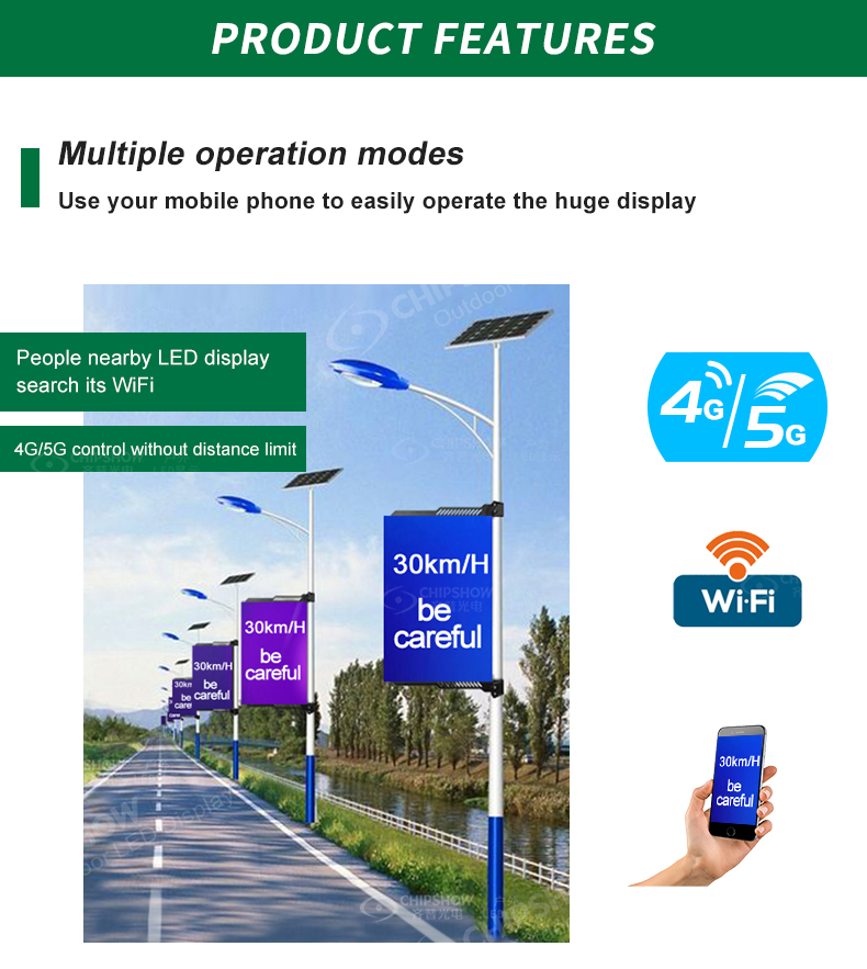 4 4G/5G-Netzwerk-Fernbedienung: Mit der C-Fit-Pole-Serie können Sie ein groß angelegtes Netzwerk aufbauen, in dem die Anzahl der Pole-LED-Bildschirme nicht begrenzt ist; Darüber hinaus erleichtert die Hochgeschwindigkeits-Datenübertragung das Versenden von Animationen, Videos und hochauflösenden Bildern.