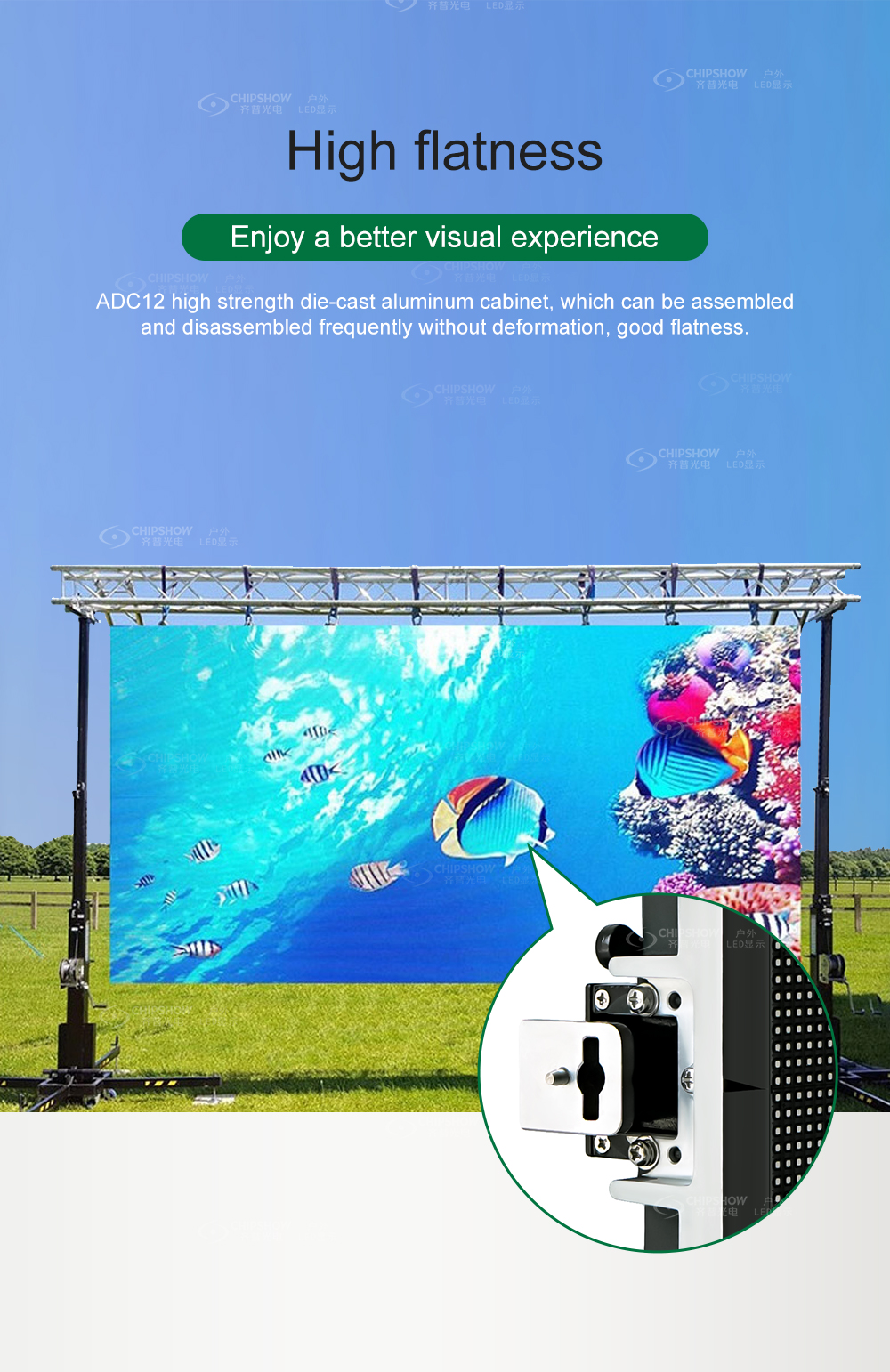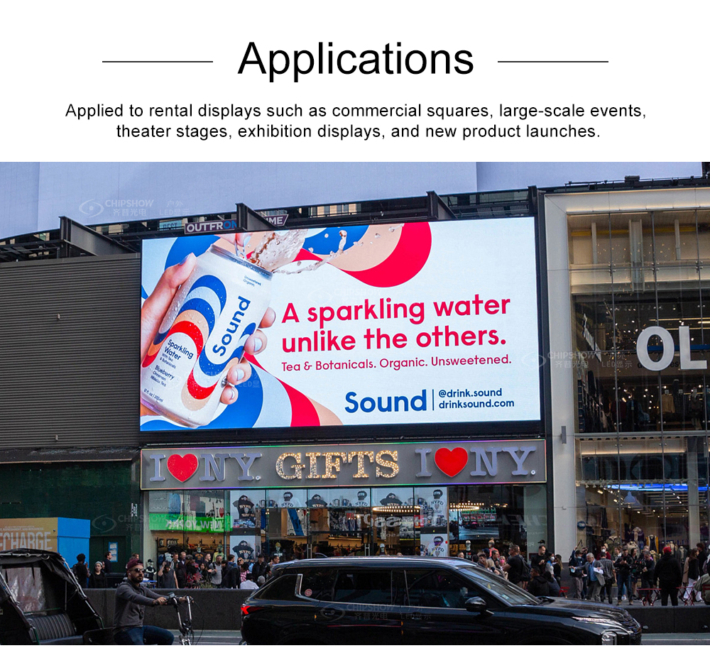 Wird für Mietdisplays wie kommerzielle Plätze, Großveranstaltungen, Theaterbühnen, Ausstellungsdisplays und Produkteinführungen verwendet.