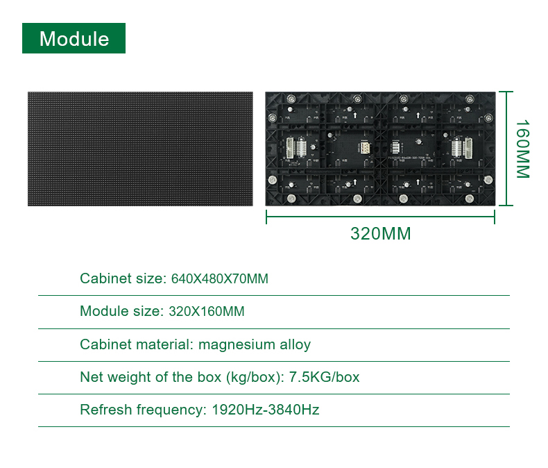 • Kompatibilität: Verfügbarer Pixelabstand für P2.5, P3, P3.3, P3.91, P4, P5, P6.