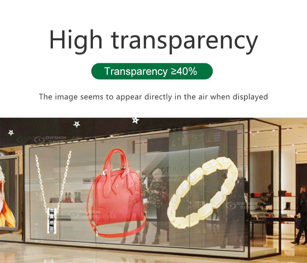 2: Hohe Transparenz: Die Transparenzrate erreicht mehr als 40 %; Bei der Anzeige auf dem Bildschirm sehen die Bilder so aus, als würden sie in der Luft erscheinen;