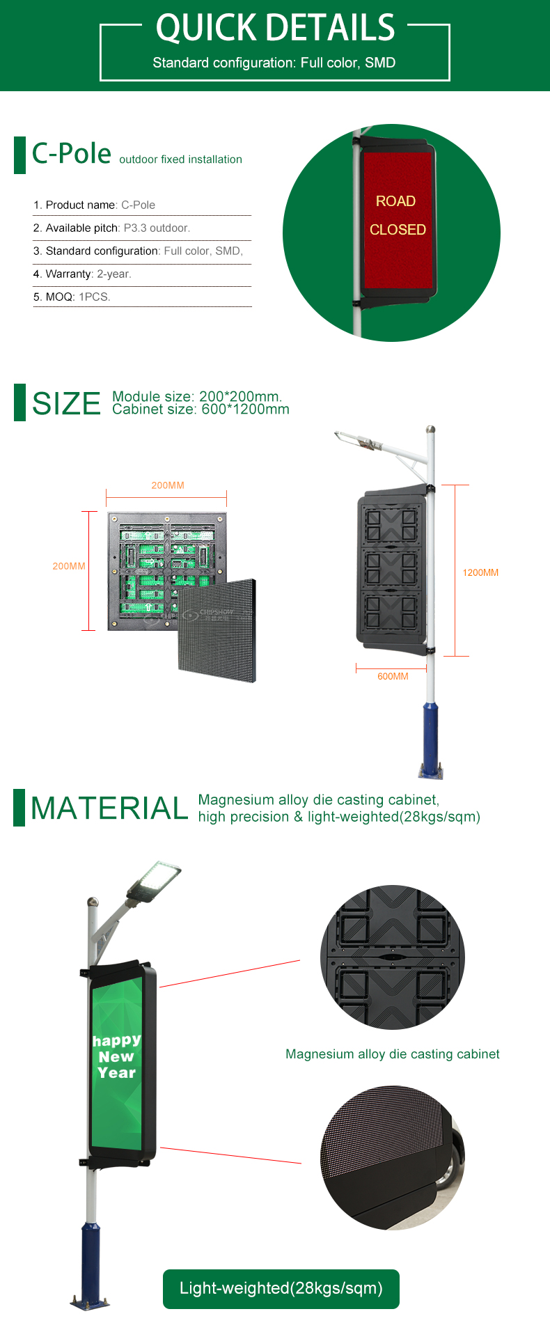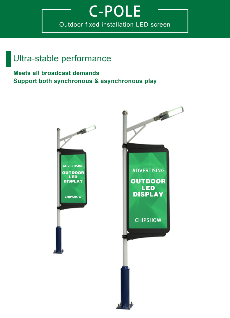5 Die C-Pole-Serie kann eine starke visuelle Wirkung auf die Augen haben – Sie können die Pole-Bildschirme beleuchten, um 24 Stunden am Tag Werbung anzuzeigen;