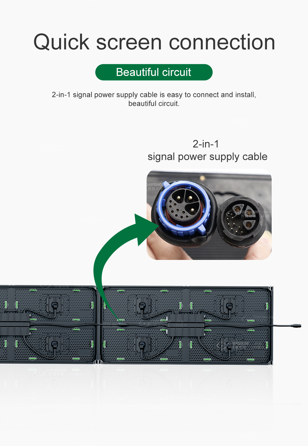 5 Schneller Bildschirmanschluss: Die Module verfügen über 2-in-1-Signalstromkabel für einen bequemen, schnellen Anschluss und eine schnelle Installation. Darüber hinaus ist die Verkabelung auch relativ ordentlich.