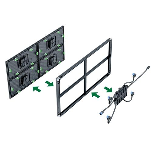 4 Selbsterweiterbar: Die großen Module (Größe: 640 x 320 mm) können aufgrund ihrer hervorragenden Ebenheit nahtlos zusammengefügt werden. Sie können schnell Bildschirme in verschiedenen Größen erstellen.