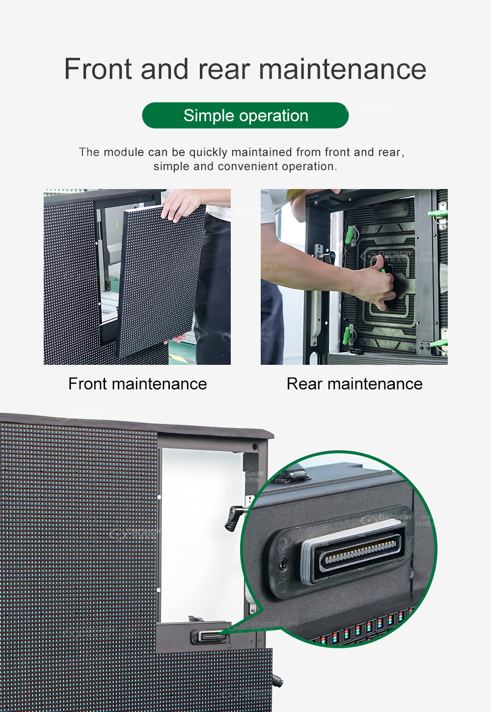 4 Jedes LED-Modul unterstützt den Front-and-Rear-Service, was die Bedienung während der Installation und späteren Wartung erleichtert;
