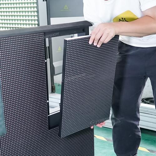 Modulfunktionen : 1, Einfach: Modularer Aufbau, einfache Montage und Wartung. 2, Modulgröße: 250 x 250 mm, glatte Oberfläche, kleine Modullücke, hohe Präzision Schrankmerkmale : ● Leicht: Schrankgröße: 500 x 500 x 86 mm, Gewicht: 8,5 kg/Stück. ● Dünn: Design aus Aluminiumdruckguss, hohe Präzision, Dicke nur 86 mm. ● Schnell: Schnelle Verriegelung, einfache Montage und Demontage. ● Kompatibilität: Verfügbarer Pixelabstand für P2.6, P3, P3.91, P4, P5, P6. ● Niedrig: Hervorragendes Kühldesign, keine Lüfter oder Klimaanlagen erforderlich geräuschlos, geringer Stromverbrauch, kostengünstig.