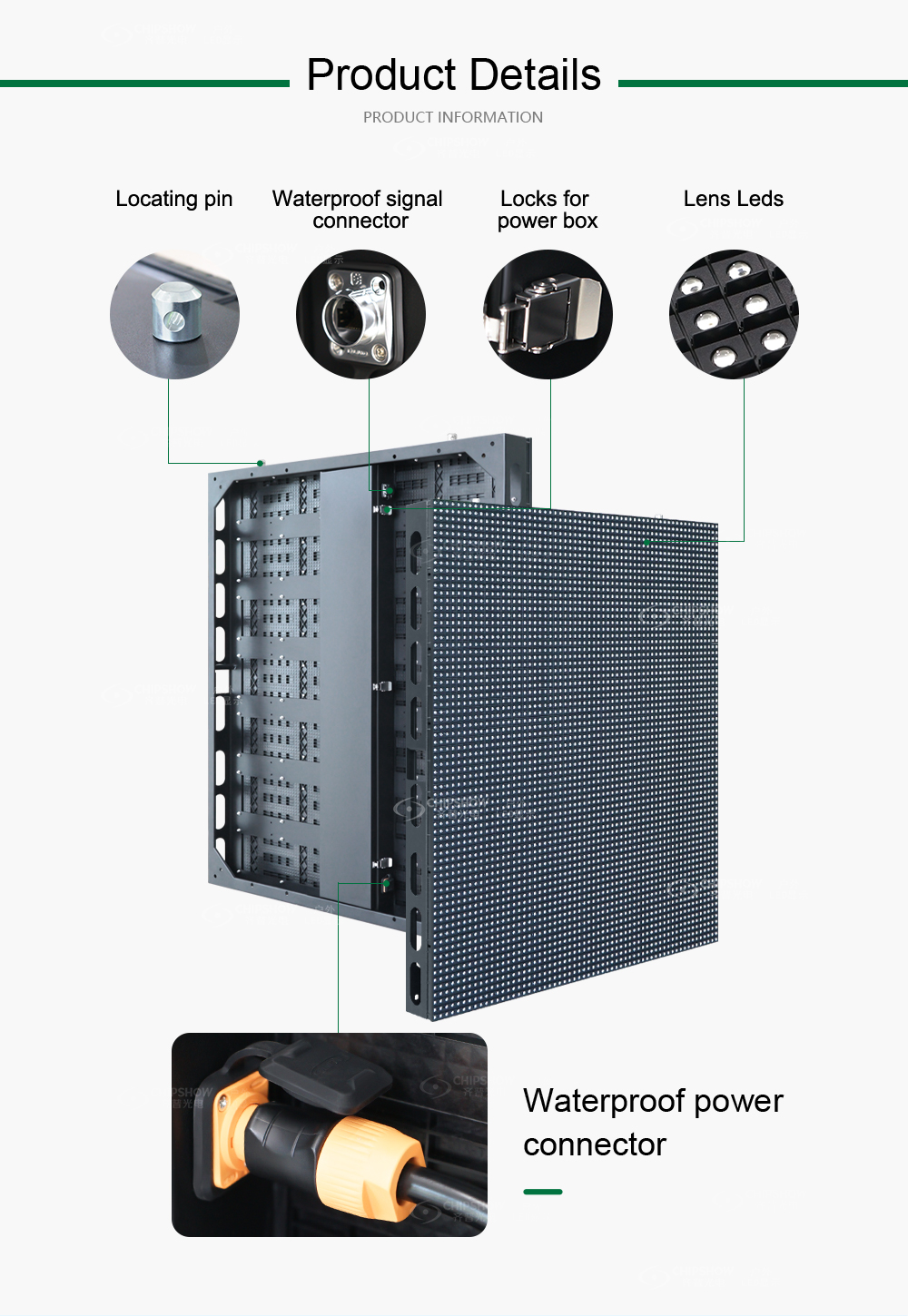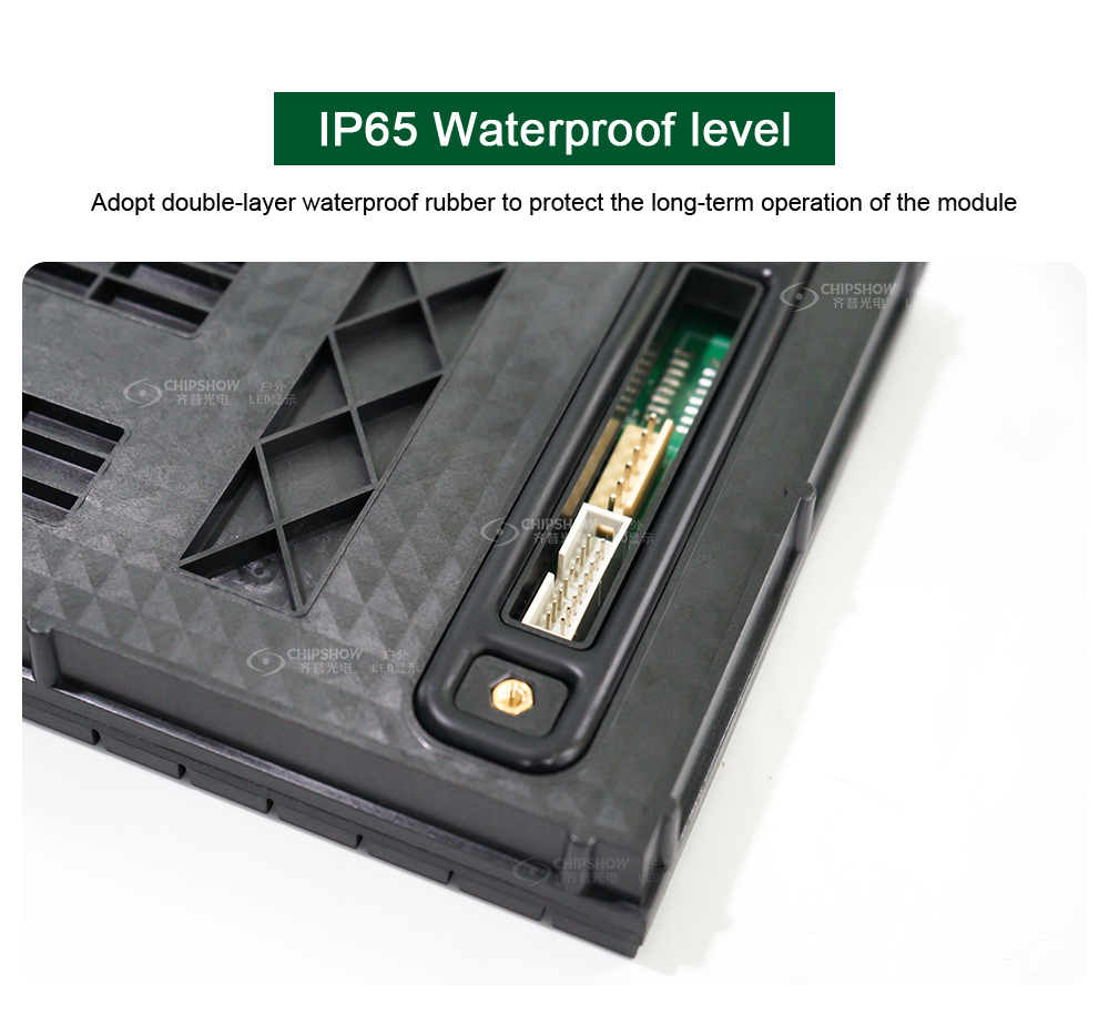 4 Hoher Schutz – jedes LED-Modul und jedes Gehäuse sind vollständig geschlossen und sowohl die Vorder- als auch die Rückseite des Bildschirms sind IP65-zertifiziert;