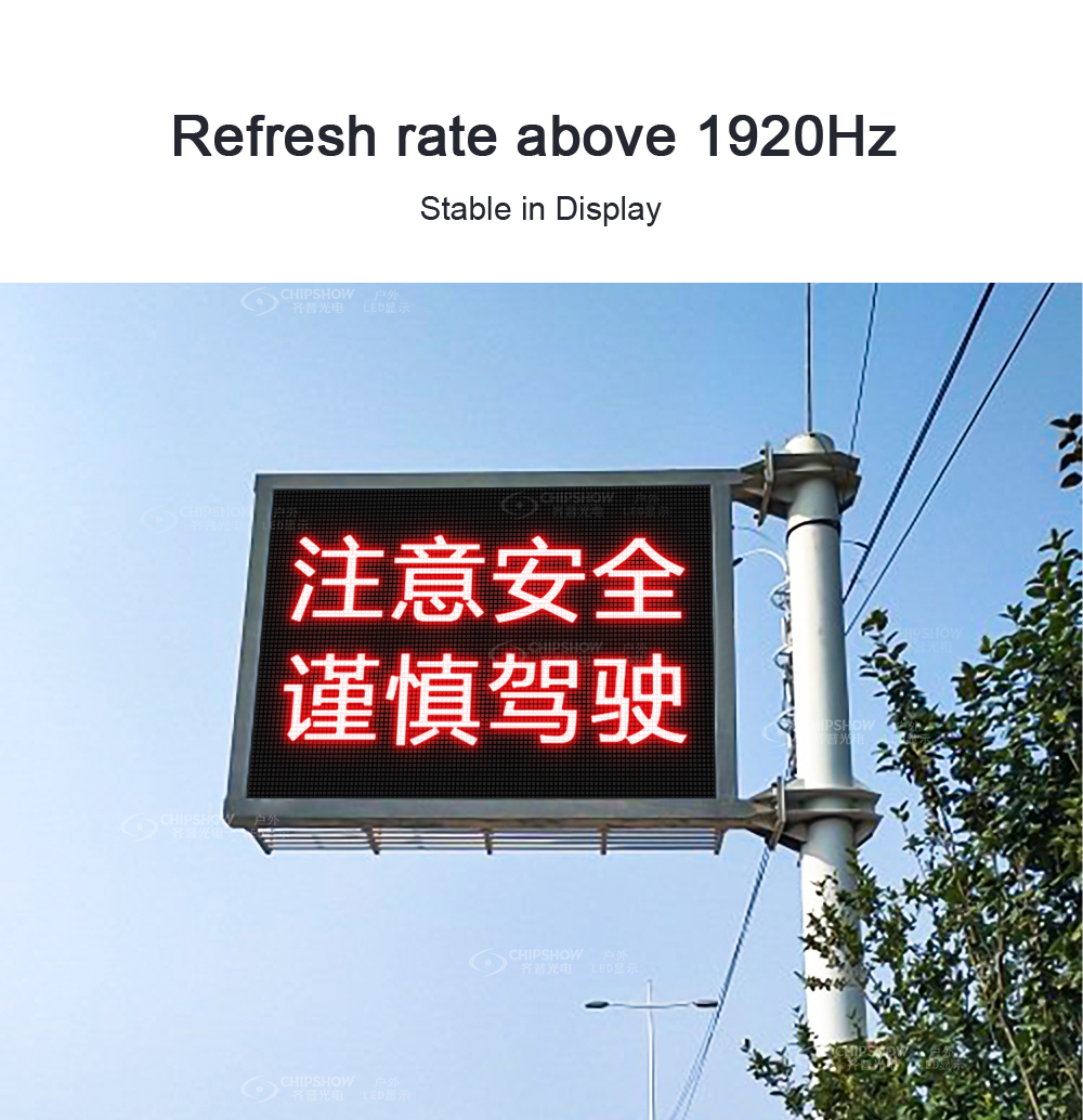 7 Hohe Zuverlässigkeit: Um die Zuverlässigkeit und Stabilität des Bildschirms unter allen Arten von schlechten Wetterbedingungen zu gewährleisten, verwendet der Bildschirm hochwertige LED-Perlen, ICs und Netzteile;