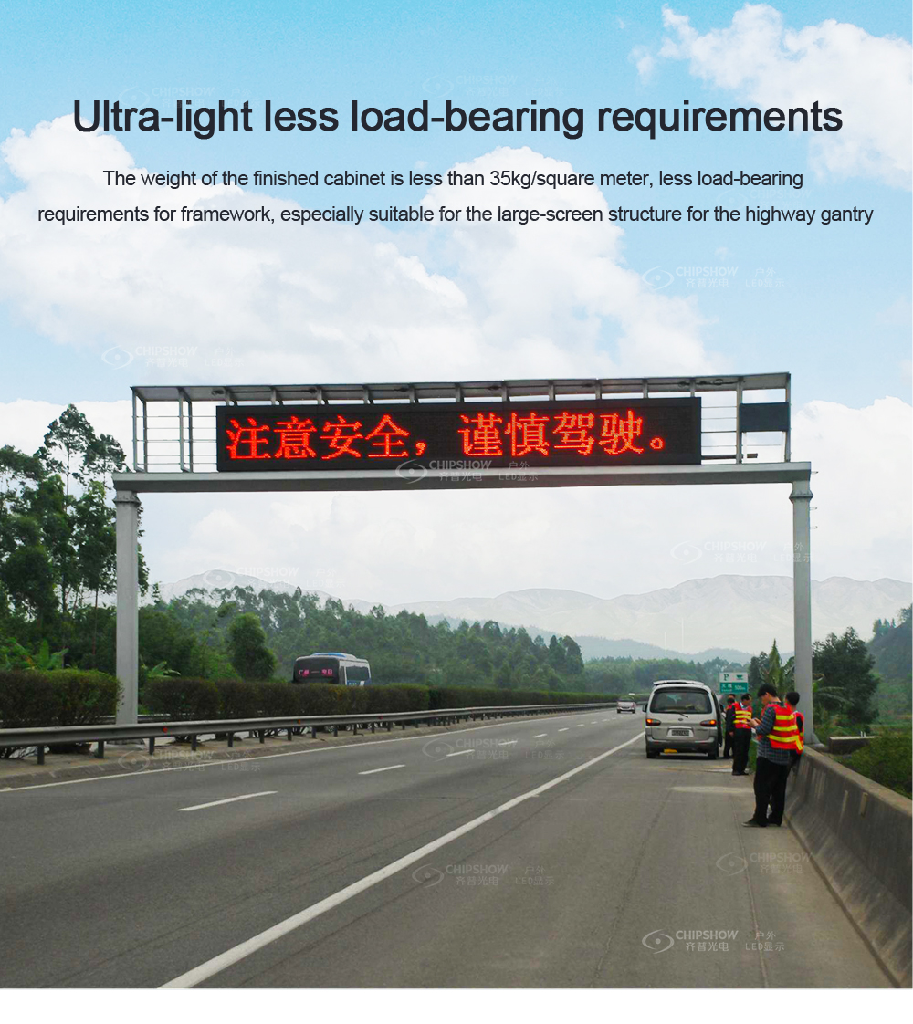 6 Ultraleicht: Das Gewicht jedes fertigen Schranks beträgt weniger als 35 kg/㎡, daher gibt es keine strengen Anforderungen an die Festigkeit der Tragkonstruktion und eignet sich gut als große LED-Bildschirme auf Autobahnen;