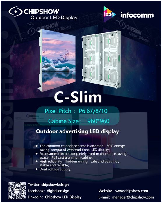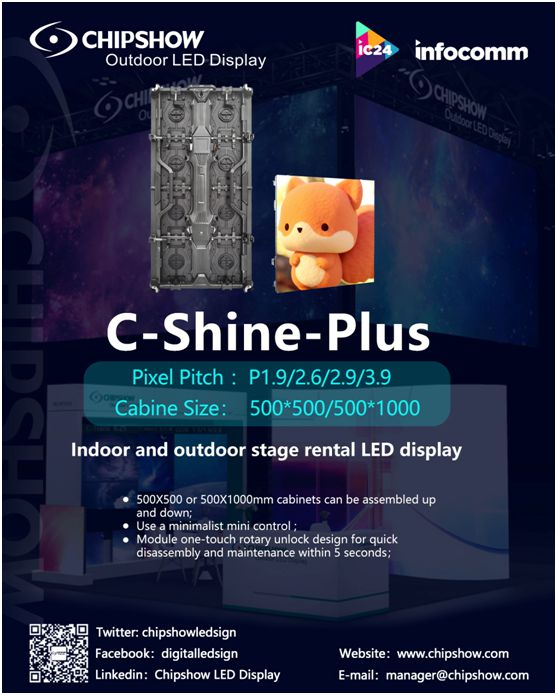 Chipshow LED Display, einer der führenden Hersteller von LED-Displays aus China, hat angekündigt, dass sie ihr gesamtes Sortiment (Außenbereich, Innenbereich, Vermietung, Bühne usw.) präsentieren werden.(COB, Transparent, Sport) futuristische LED-Displaylösungen auf der InfoComm IC 2024 in Las Vegas vom 12. bis 14. Juni 2024. Stand Nr. W3599.