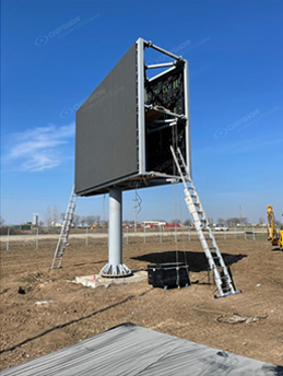 Für dieses Projekt haben wir insgesamt 24 Quadratmeter LED-Anzeige geliefert, es handelt sich um eine zweiseitige Werbetafel, sodass jede Seite 12 Quadratmeter Bildschirm hat. Für jede Seite des Bildschirms wurden insgesamt 5 Schränke verwendet.