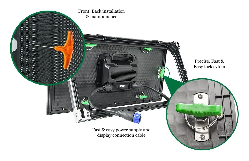 C-Smart ist ein patentiertes Produkt, das von CHIPSHOW entwickelt wurde. Es verfügt über flexible Installationsmethoden und kann an der Wand, auf einem Ständer, angehoben oder aufgehängt installiert werden. Sein integriertes integriertes Design vereint Komfort, Praktikabilität und Fortschrittlichkeit, eliminiert die traditionelle Kastenstruktur herkömmlicher LED-Anzeigen und eignet sich für verschiedene raue Installationsumgebungen im Freien. Zusammenfassend ergeben sich folgende Vorteile: