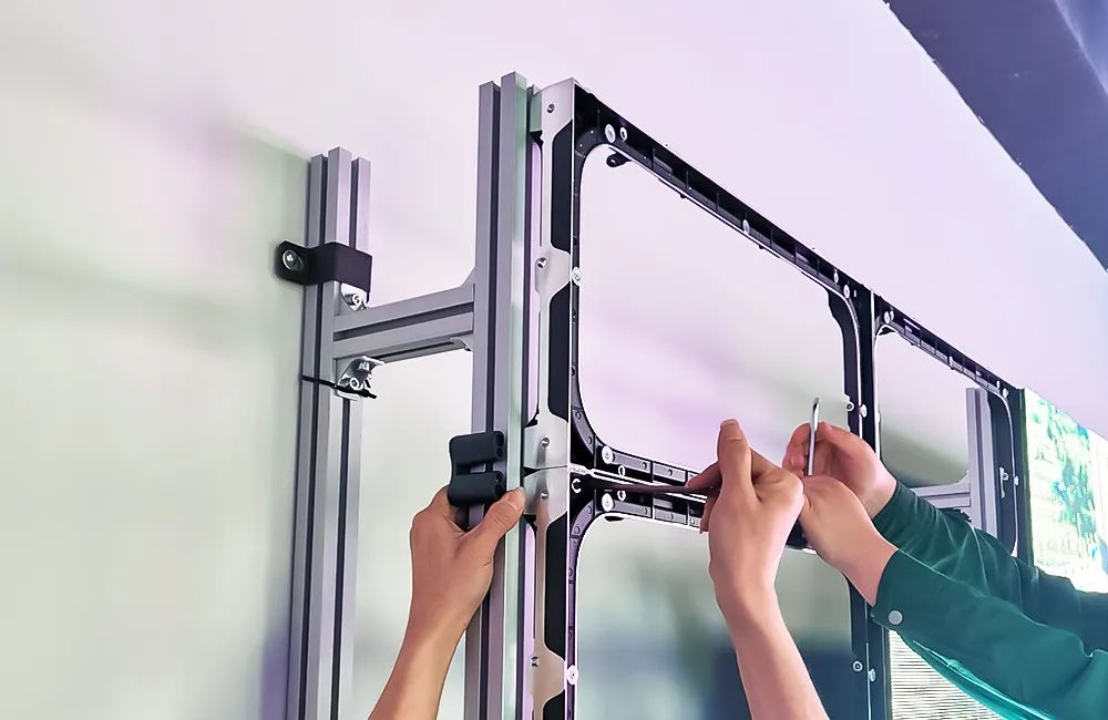 4. Die Produktmontage- und Installationsstruktur übernimmt das globale Standard-Vierkantrohr. Bei der Installation müssen Sie lediglich das Vierkantrohr an der Wand befestigen und die Bildschirmkacheln manuell zusammenbauen. Es besteht keine Notwendigkeit, den Kasten und die Struktur neu anzufertigen.