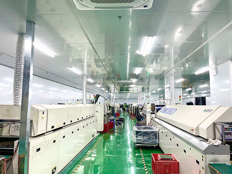 Die SMD-Werkstatt im dritten Stock ist 750 Quadratmeter groß, 6 automatische Hochgeschwindigkeitsmontagelinien von Fuji und Samsung mit einer täglichen Produktionskapazität von 90 Quadratmetern und einer monatlichen Produktionskapazität von etwa 2700 Quadratmetern; Es verfügt über 10 vollständig konstante Ofenlinien, 4 automatische Reflow-Lötlinien und AOI-vollintelligente 4 Testgerätelinien, um die Produktqualität sicherzustellen.