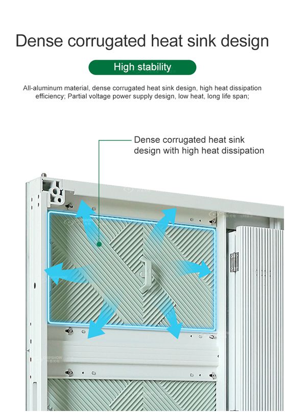 Darüber hinaus verfügen Chipshow-Produkte über ein selbst entwickeltes Doppelhelix-Unterdruck-Wärmeableitungssystem und ein dichtes, rückseitig gerilltes Wärmeableitungsdesign, das eine stabile und sichere Wärmeableitung ohne Klimaanlage gewährleisten kann. Nach jahrelanger Erfahrung mit Schaltkreisen gibt es in der Branche bessere Schaltkreislösungen.