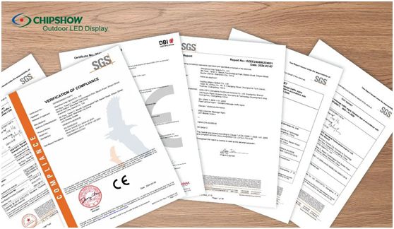 In Bezug auf die Produktzertifizierung haben Chipshow-Produkte eine Reihe maßgeblicher Zertifizierungen bestanden, wie z. B. EN12966, CE, UL, 3C und andere in- und ausländische Zertifizierungen, was die Sicherheitsrisiken in Bezug auf die Produktqualität erheblich reduziert.