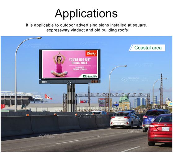 Daher ist C-Slim ein LED-Bildschirm, der speziell für den Außenbereich entwickelt wurde. Es eignet sich sehr gut für Verkehrsbildschirme oder Werbebildschirme. Im Folgenden finden Sie einige Installationsszenarien.