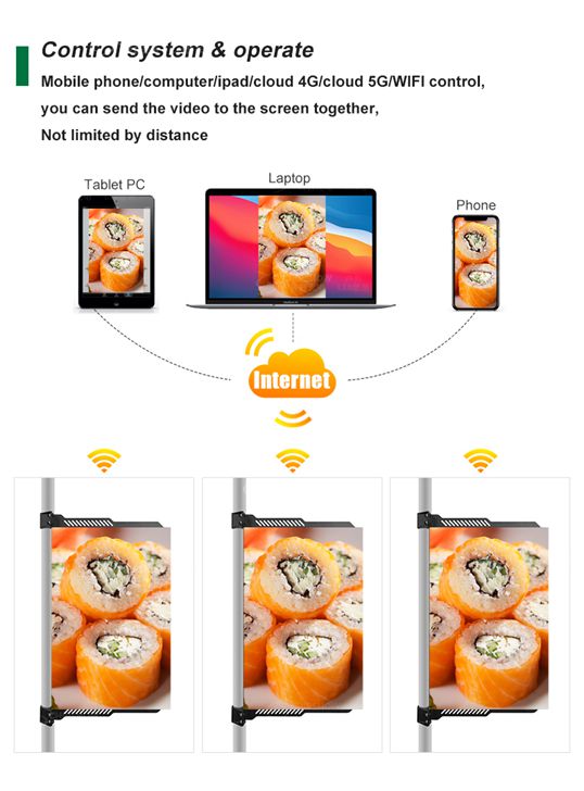 Der intelligente LED-Lichtmastbildschirm für den Außenbereich ist mit einem Fernbedienungs- und Überwachungssystem ausgestattet, sodass Bediener Anzeigeinhalte, Helligkeit und interaktive Funktionen in Echtzeit verwalten und steuern können. Darüber hinaus können LED-Bildschirme für Lichtmasten im Freien auch an die Kundenbedürfnisse angepasst werden, z. B. in Größe, Helligkeit, Farbe usw., um den Anzeigeanforderungen verschiedener Szenen und Bedürfnisse gerecht zu werden.