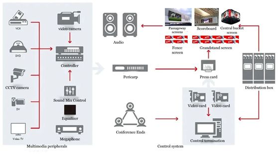 Die Lösung umfasst LED-Bildschirme und deren periphere Zusatzsystemausrüstung sowie Software und Hardware. Durch die organische Integration von Software und Hardware werden Zusammenschaltung und kollaborative Steuerung erreicht, wodurch die zentrale Steuerung und Verknüpfungssteuerung mehrerer Szenen, mehrerer Bildschirme, mehrerer Geräte, mehrerer Systeme und mehrerer Signale ermöglicht wird, die Anforderungen vereinfachter und flexibler Geschäftsabläufe erfüllt werden und die Informatisierung von Sportveranstaltungen und den intelligenten Bau von Sportstätten unterstützt werden.